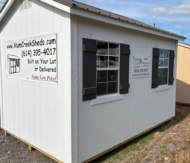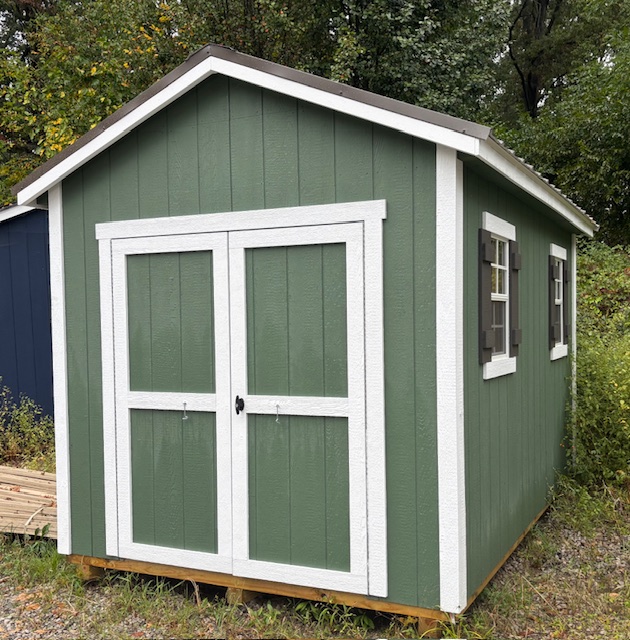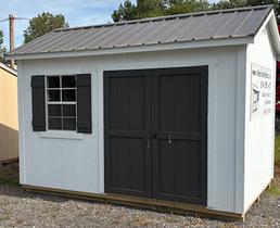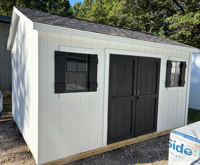 #38 -8x10 Gable, white paint, black trim, black shingles.